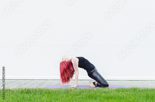 © focusandblur, Fototapeta premium Woman stretching outdoors in a park