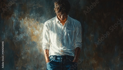Obraz premium Woman Struggling with Obesity and Weight Loss Goals Embracing Body Positivity in White Shirt and Blue Jeans