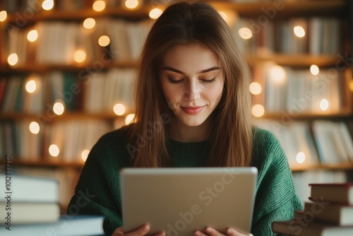 © Analogue, Fototapeta premium Woman Studying with Tablet in Cozy Indoor Space