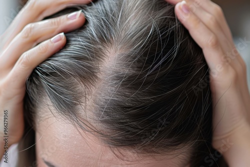 © alisaaa, Fototapeta premium Woman suffering from hair loss. Treatment of hair problems Woman suffering from hair loss. Treatment of hair problems