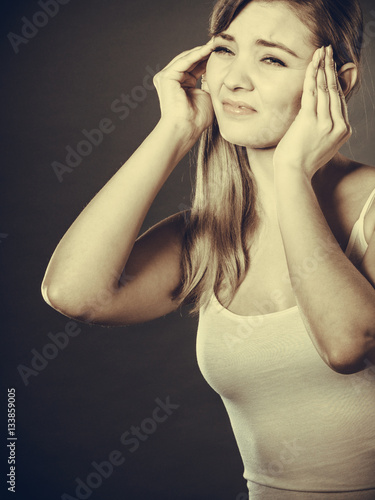 Obraz premium Woman suffering from headache migraine pain.