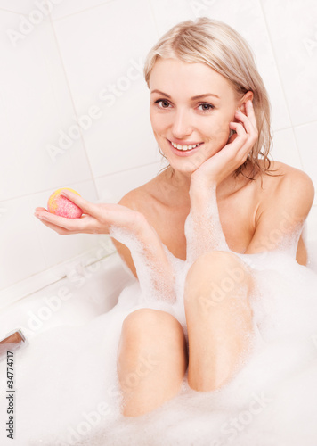 © LanaK, Obraz premium woman taking a bath