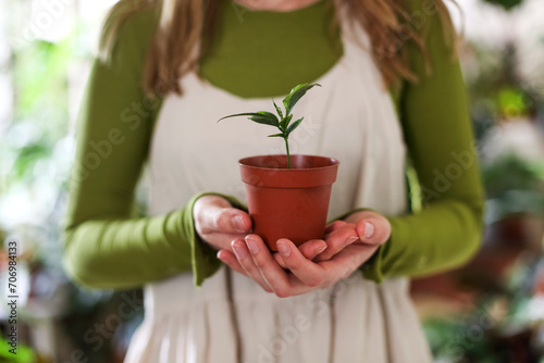 © Dasha Petrenko, Obraz premium Woman taking care of green plant in shop