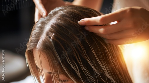 © PixelPaletteArt, Obraz premium Woman taking care of her hair
