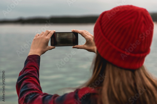 © ikostudio, Obraz premium Woman taking pictures with a cellphone