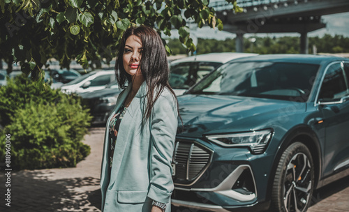 Fototapeta premium Woman thinking about something in big city life . Concept of modern ladies...