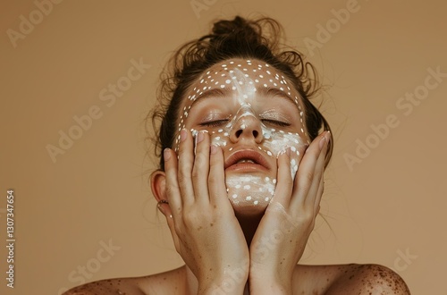 © nikolettamuhari, Fototapeta premium Woman touching her face with decorative pearls in beauty concept