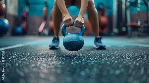 © vanilnilnilla, Naklejka premium Woman Training with Kettlebell in Gym
