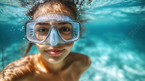 © nafsul, Naklejka premium Woman Underwater Wearing Diving Mask