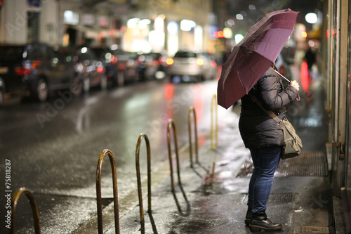 © Anna Jurkovska, Obraz premium Woman unnder the umbrella standing on the sidewalk