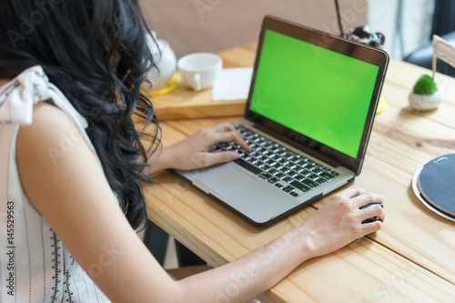 Fototapeta premium Woman use of the laptop computer, Selective focus, focus too soft.