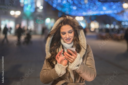 © Dusan Petkovic, Fototapeta premium Woman using smart phone for texting while standing in the street.