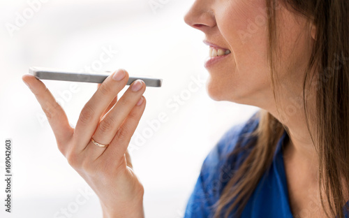 © Syda Productions, Obraz premium woman using voice recorder on smartphone