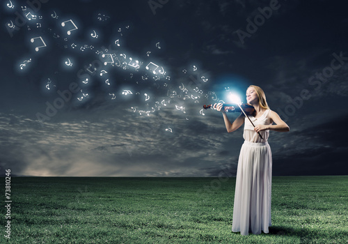 © Sergey Nivens, Naklejka premium Woman violinist