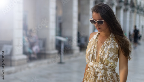 Fototapeta premium Woman waling Historic centre of Corfu town