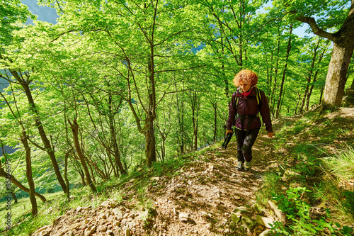 Naklejka premium Woman walking in the forest