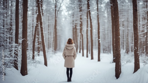 © Наталия Пилипенко, Obraz premium woman walking in winter forest