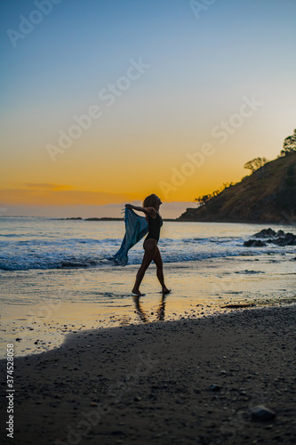 Naklejka premium woman walking on the beach