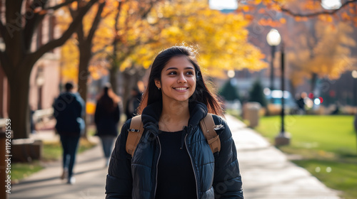 © bbstudio, Fototapeta premium woman walking on the university campus