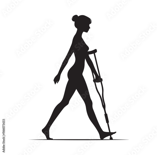 Fototapeta premium Woman Walking With Crutches silhouette vector illustration