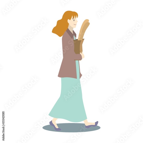 © captainvector, Obraz premium woman walking with grocery bag
