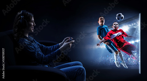 © Sergey Nivens, Fototapeta premium Woman watching footbal game . Mixed media