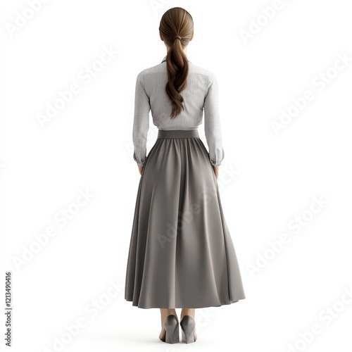 © arri, Fototapeta premium Woman wearing a grey midi skirt and patterned shirt