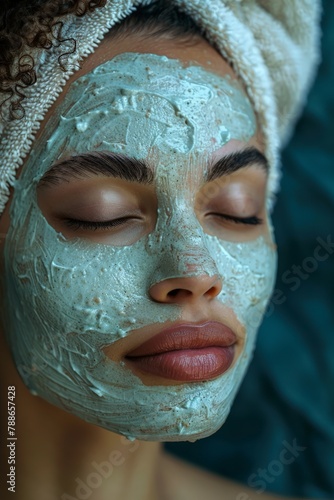 Fototapeta premium Woman wearing face mask and towel on head