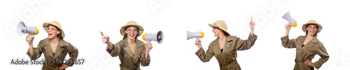 © Elnur, Naklejka premium Woman wearing safari hat on white