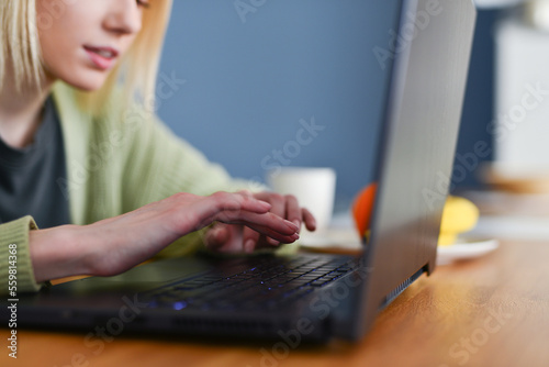 © undrey, Fototapeta premium Woman with a laptop close-up