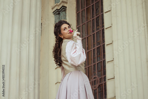 Obraz premium Woman with a rose in an old building