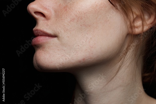 © Ahmed, Obraz premium Woman with acne scars on skin against black background