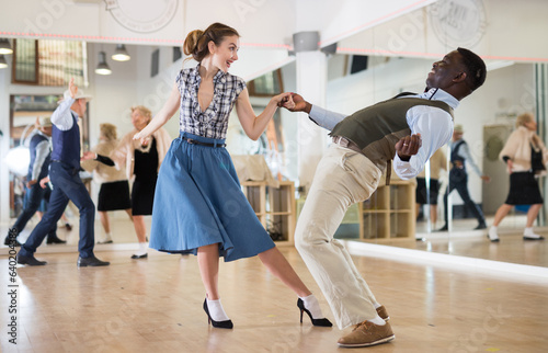 © caftor, Obraz premium Woman with african man practising charleston dancing