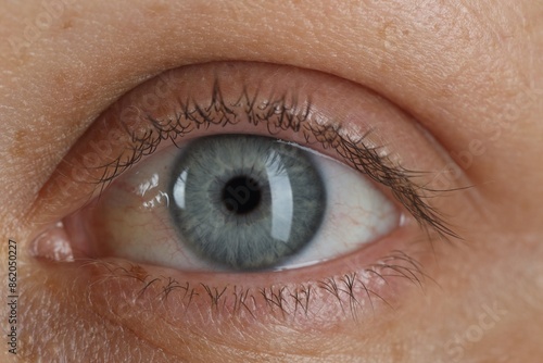 Fototapeta premium Woman with beautiful blue eyes, macro photo