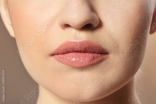 © Africa Studio, Obraz premium Woman with beautiful makeup on color background. Professional visage artist work