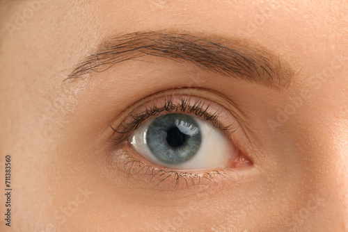 Obraz premium Woman with beautiful natural eyelashes, closeup view