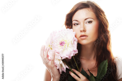© Raisa Kanareva, Fototapeta premium woman with big pink flowers