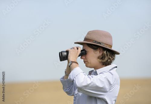 © aldegonde le compte, Obraz premium woman with binoculars outdoors