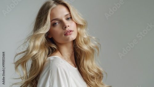 Fototapeta premium Woman with Blonde Hair in Elegant Pose