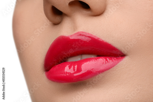 © New Africa, Obraz premium Woman with bright lip gloss, closeup view