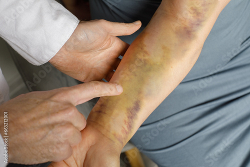 © millaf (Nemchinova), Fototapeta premium Woman with bruised hand at doctor's office