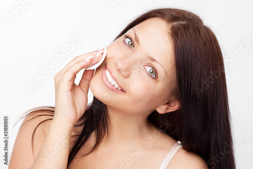 © LanaK, Naklejka premium woman with cotton pads