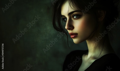 © jambulart, Fototapeta premium Woman with dark hair and red lips.