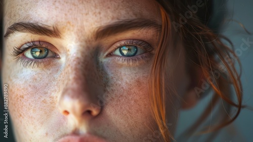 © Johannes, Fototapeta premium Woman with freckles looking directly