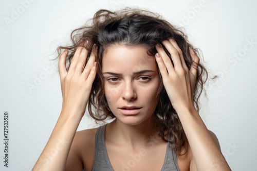Obraz premium Woman with hand on head, headache