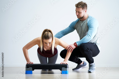 Obraz premium Woman with her personal fitness trainer