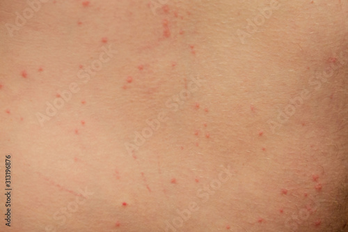 © yurakrasil, Fototapeta premium Woman with itching from biting insect in body in tropical jungle forest