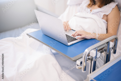 © karrastock, Fototapeta premium woman with laptop in the hospital