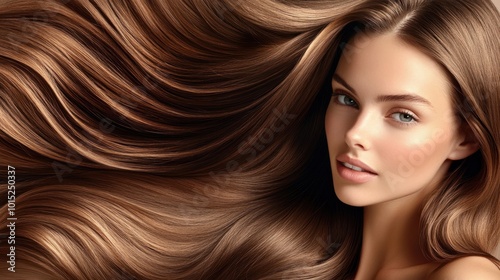 © yusufadi, Obraz premium Woman with Long Brown Hair