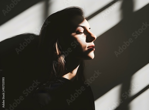 © Molang Visual, Naklejka premium Woman with Long Hair and Shadows on a Wall